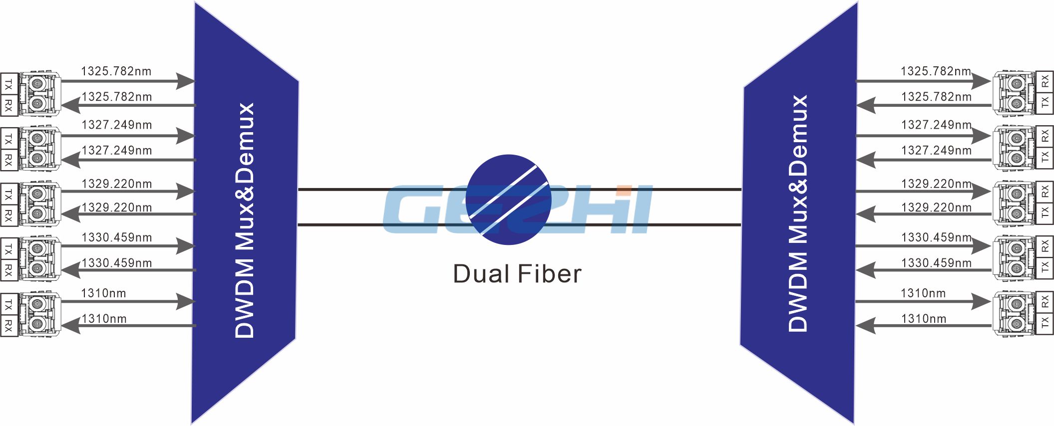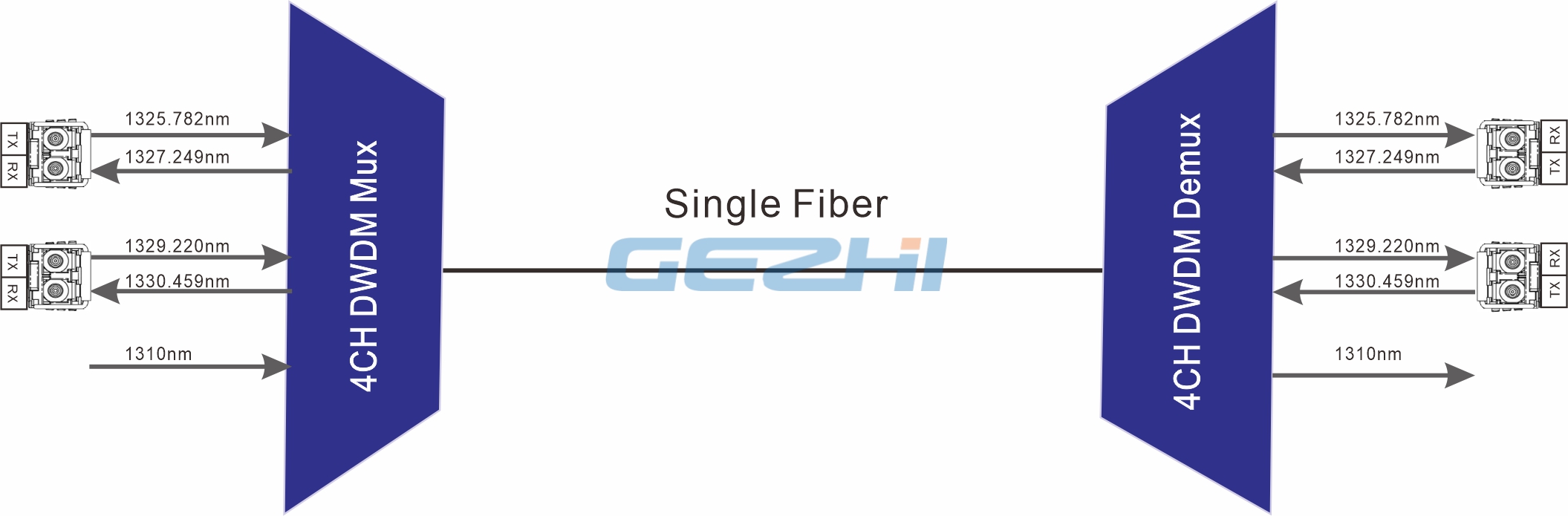 GEZHI supply high performance 200GHz Dense Wave Division Multiplexer (DWDM) in O-Band wavelengths